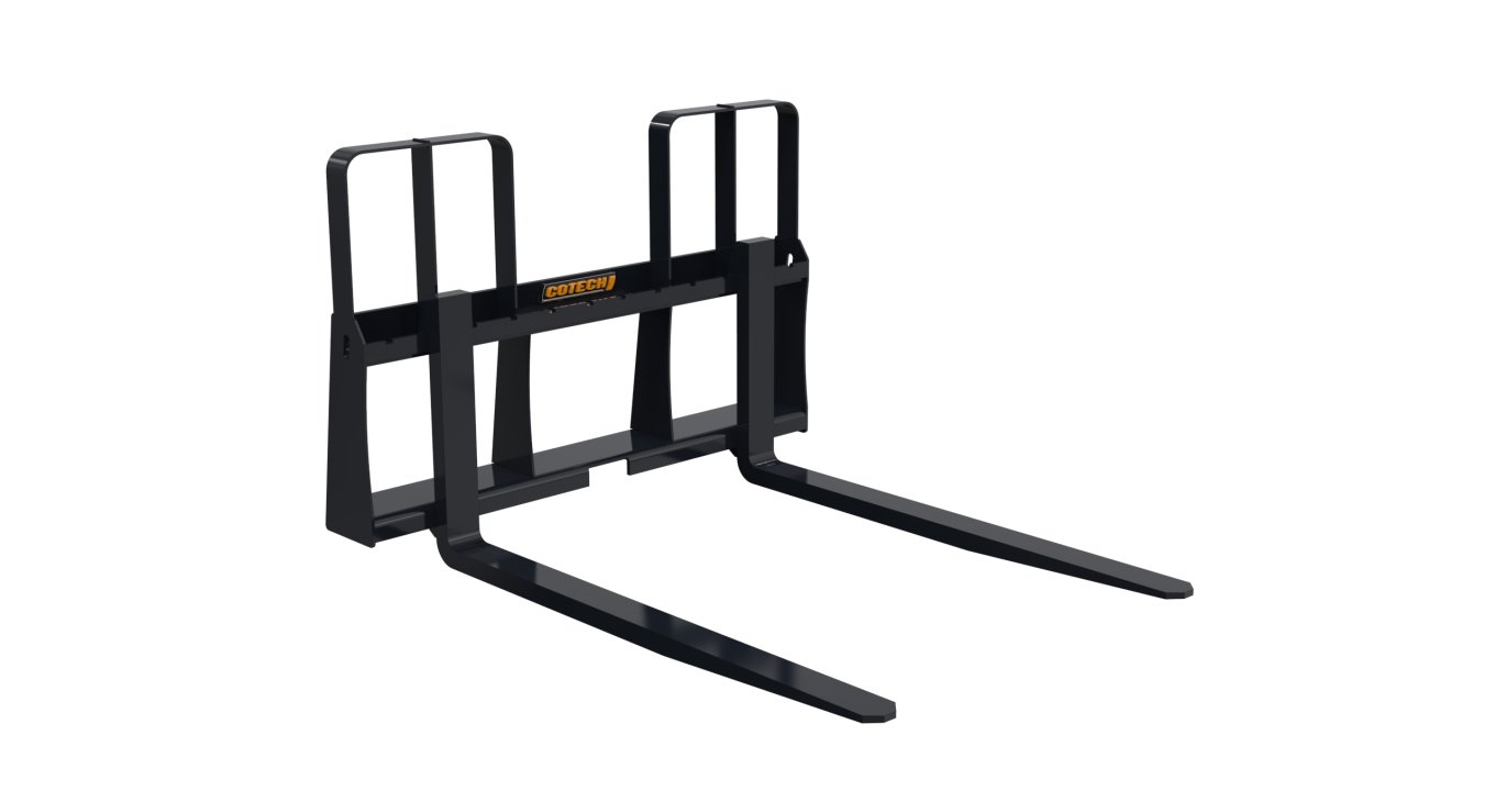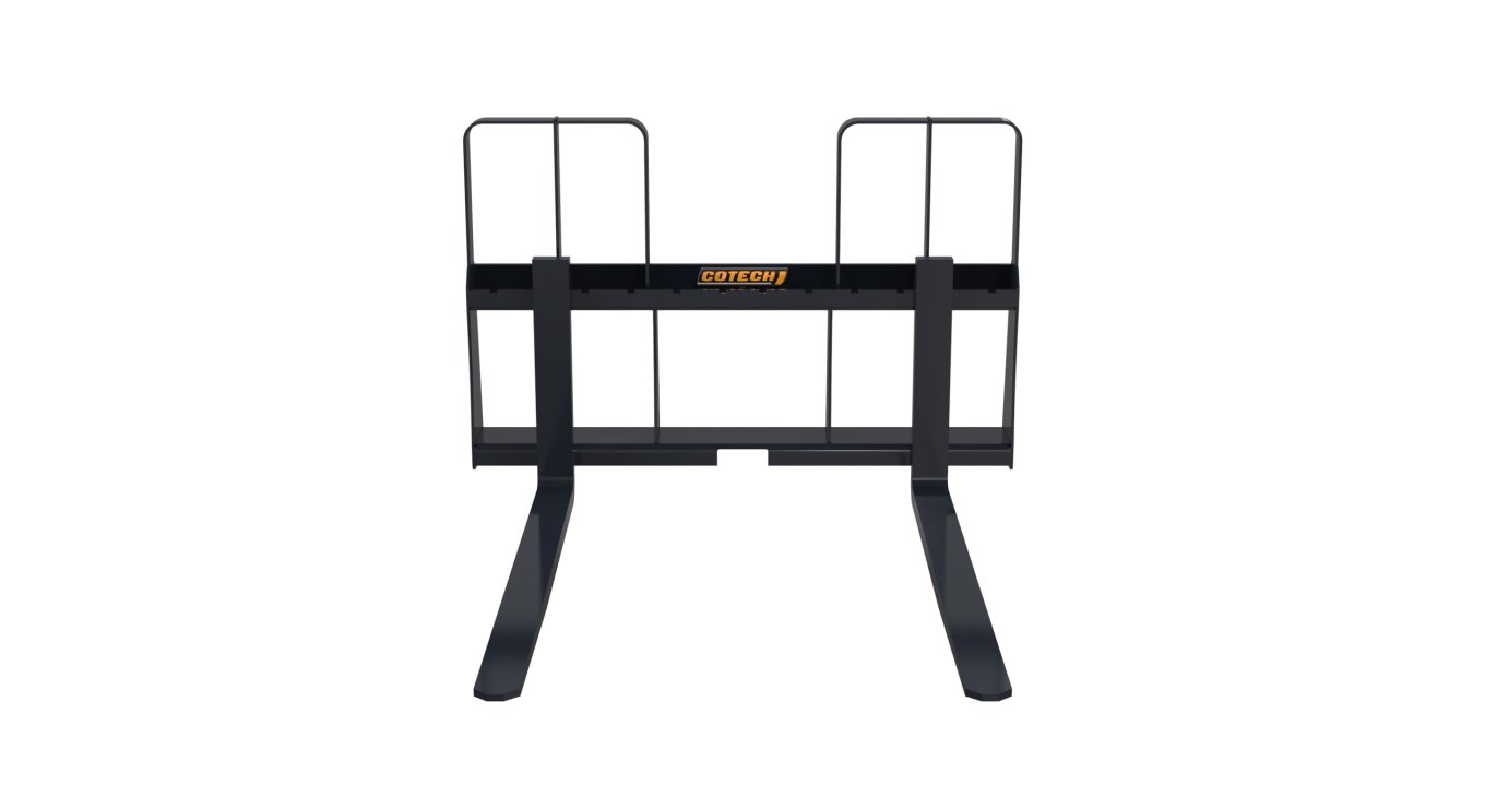 Built to last, Cotech pallet forks come with a 5-year frame warranty. Thanks to their narrow design, which brings the forks closer to the pivot point, the loader’s full lifting capacity can be utilized. The machined notched support makes it easy to adjust the spacing between the forks while significantly increasing their strength. Finally, the safety hoops are welded directly to the frame for enhanced safety and optimal durability.