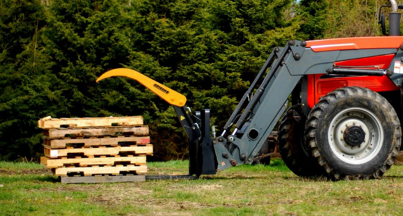 This easily removeable bolt-on pallet fork grapple is designed to handle logs, brush, bales or simply putting downwards pressure on the pallet for safer transportation.