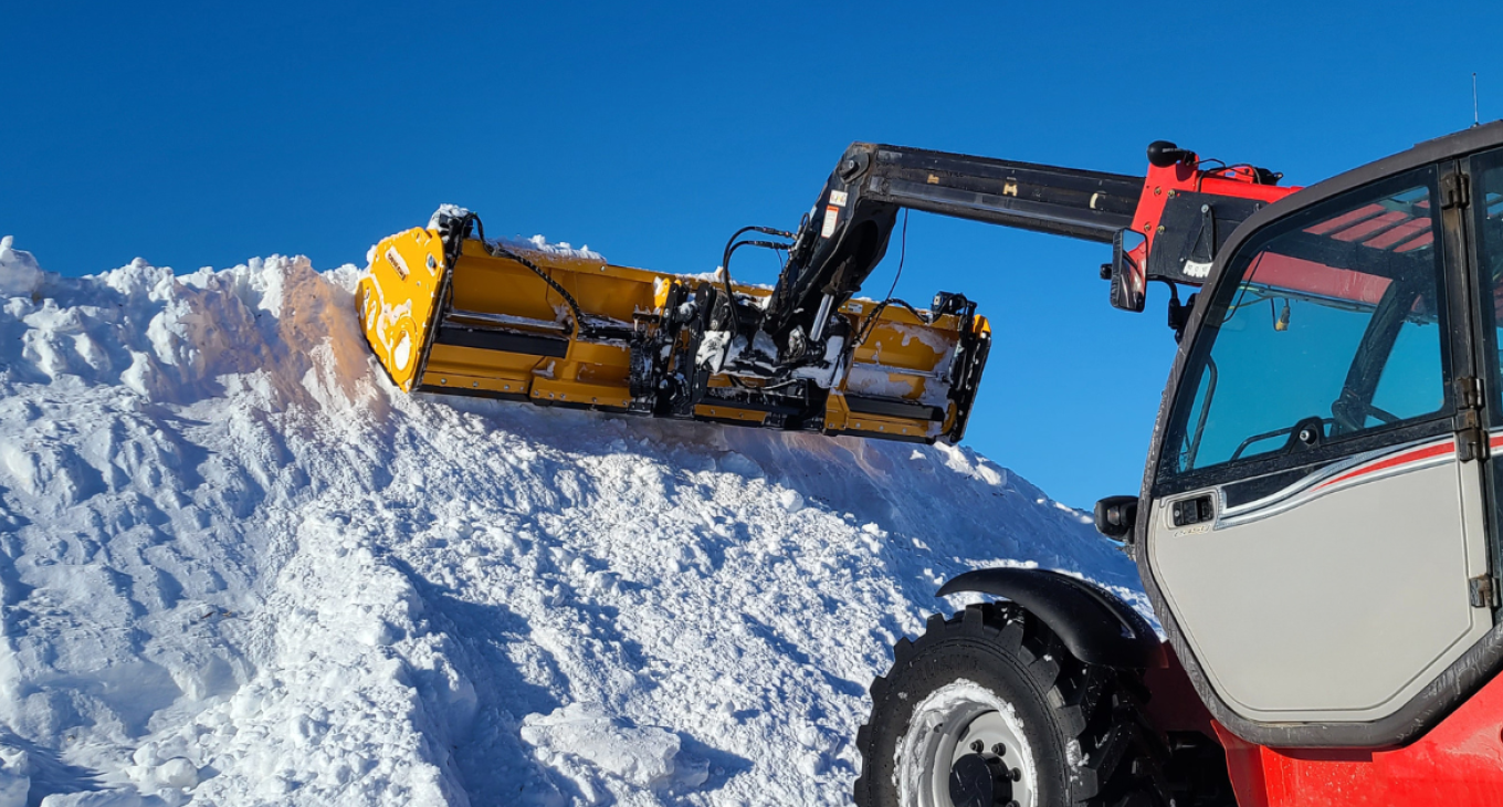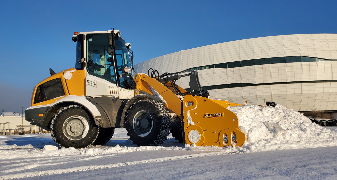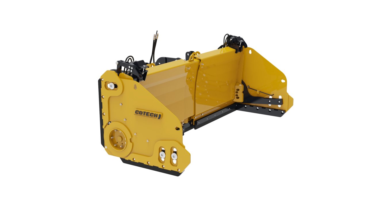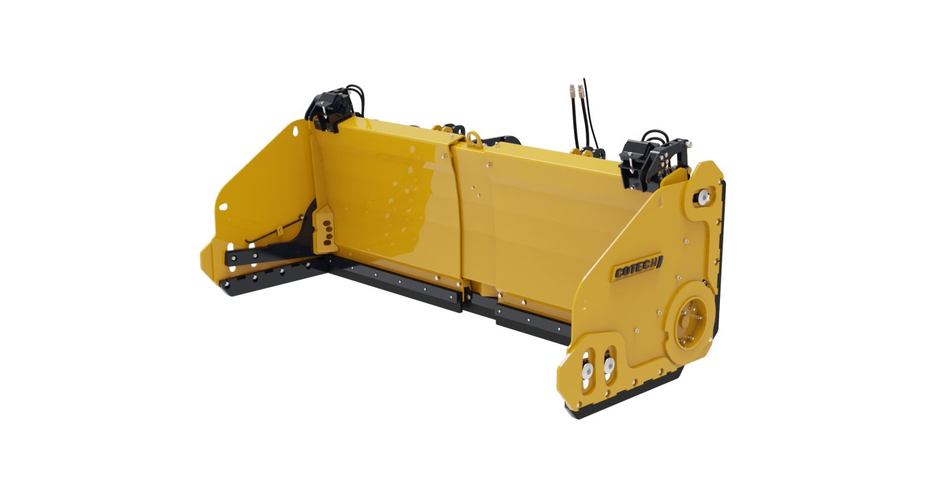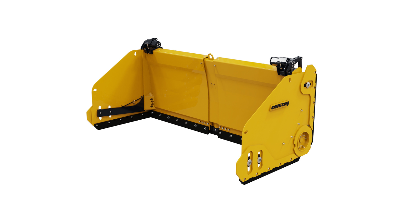 The PPCR-L snow plows are extendable with rotating wings, specially designed for wheel loaders under 13,000 lbs. The loader carriage system integrates the mechanical float and trip system. Their design is optimized for low-speed operation, ensuring performance during your residential and commercial snow removal activities. The PPCR-L snow plows excel in tight spaces and between vehicles in a parking lot. The extensions allow you to adjust the width of the plow according to your needs. The rotating wings enable the operator to clear snow near obstacles safely and quickly. Cotech's exclusive angular design minimizes snow and frost accumulation.