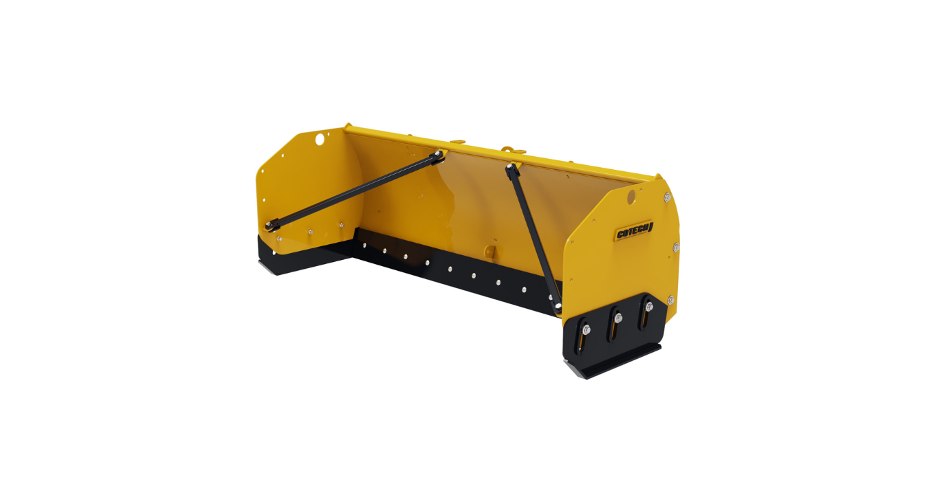 Available in widths from 5 to 10 feet, they are offered in heights of 24, 30, and 36 inches, depending on the weight of your carrier equipment. They are compatible with several types of equipment ranging from 3,000 to 15,000 lb. These plows are lightweight and easy to pair with a front loader. The cutting edges are available in different configurations, in steel or UHMW. The removable sides are bolted, and the brackets, also bolted, are offered in several models. The floating skid shoes absorb road imperfections for uniform operation.