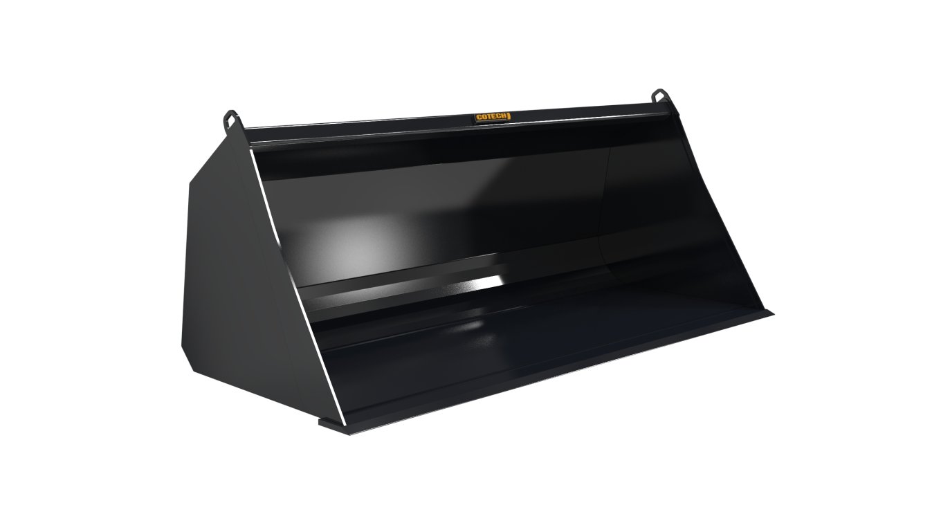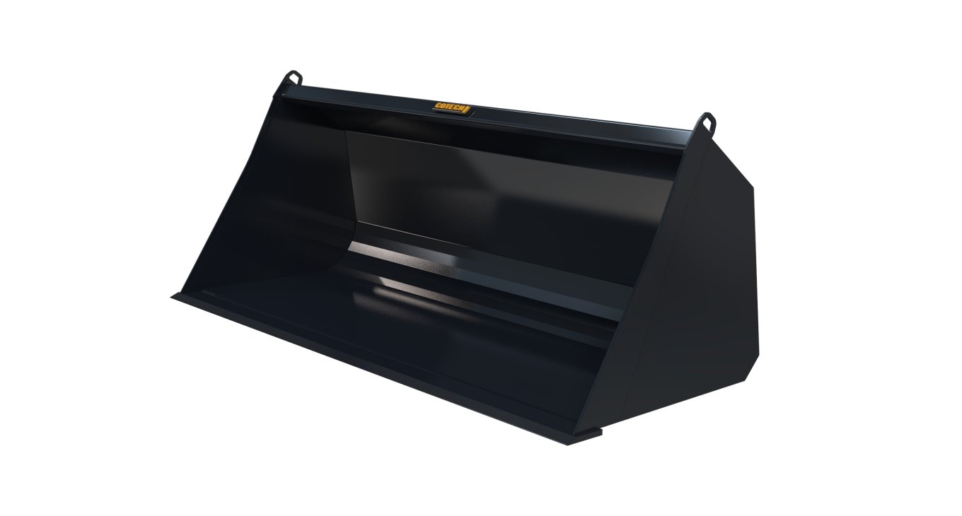Les bennes sont fabriquées avec de l'acier 1/4" rigide et solide. Elles sont munies d'un couteau de 6" x 3/4" en acier au carbone et de renforts latéraux de 3/8'' d'épaisseur sur toute la hauteur. Le double fond à angle maximise sa longévité et facilite le chargement des matériaux. Les pièces d'usure sont fabriquées en Hardox® 450 pour réduire le poids tout en augmentant la durabilité.